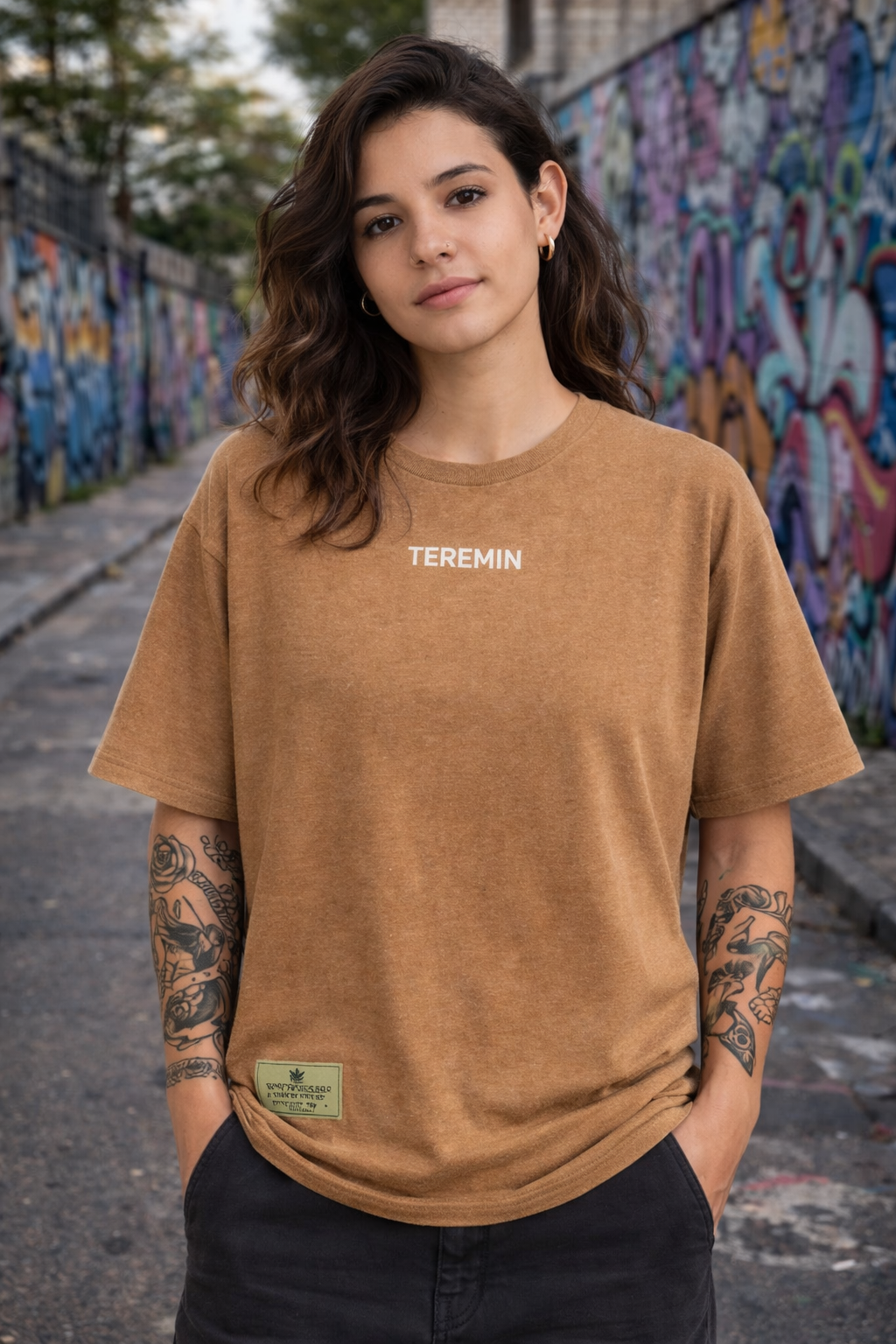 • Camiseta TEREMIN oversized feita com 70% cânhamo e 30% algodão, oferecendo conforto, durabilidade e estilo urbano. Modelagem ampla, tecido premium e visual moderno.