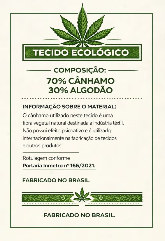 Produzida com uma composição diferenciada de 70% cânhamo têxtil e 30% algodão, essa camiseta oferece alta durabilidade, toque macio e excelente respirabilidade. O cânhamo é uma fibra natural conhecida por sua resistência e baixo impacto ambiental, tornando essa peça uma opção moderna e consciente.